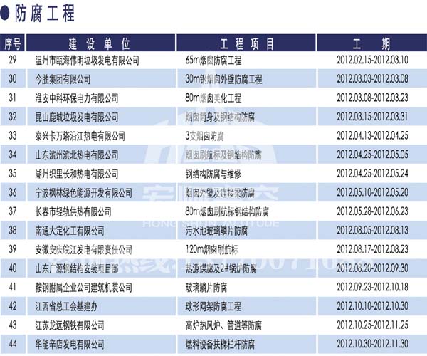 宏順建設工程有限公司是國家批準成立的專業(yè)高空作業(yè)企業(yè):承攬過(國內.國外)煙囪新建、煙囪防腐、磚煙囪新建、煙囪改造、煙囪維修、煙囪脫硫防腐、煙囪拆除加高、煙囪滑膜等高空作業(yè)工程。具有“不搭腳手架 、 不需要停產”施工特點。